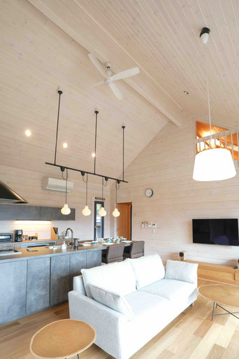 室内は天井の高いリビングダイニングルーム、モダンなキッチンやマリメッコ、イッタラなどの北欧食器、2つの独立した寝室とロフト、広々したパウダールームとバスルーム、屋根付きウッドデッキを備えており、ご家族やご友人と滞在や女子旅などのご利用時でもゆったりと快適にお過ごしいただけます。また、ドラム式洗濯乾燥機、薪ストーブ、BBQグリル、Bluetoothオーディオ、高速WifiやNetflix視聴可能な大型TVなど、設備面も充実していますので、ワーケーションや長期滞在でもご不便なくご利用いただけます。