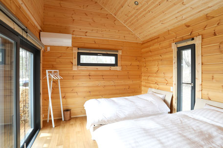 The bedrooms are furnished with mattresses from Italy's Magniflex. Each bedroom features large windows that create an open atmosphere, allowing you to rest surrounded by the expansive nature of Yatsugatake.